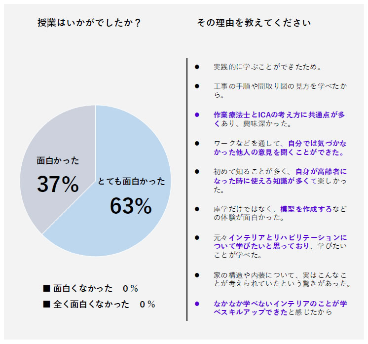 •将来医療の現場で働くとき、患者さんに寄り添い、住宅のことまで考えられるようにインテリアの勉強をもっとしていきたい。
